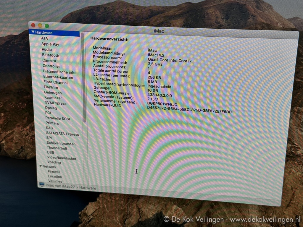 Apple iMac 27-inch (Late 2013) all-in-one computer, model A1419, EMC 2639, Model ID iMac14,2, met Intel Quad-Core i7 3,5Ghz processor, 16GB geheugen, Samsung 860 EVO SSD 500GB opslag, NVIDIA GeForce GT 755M 2GB videochip, inclusief voedingskabel
