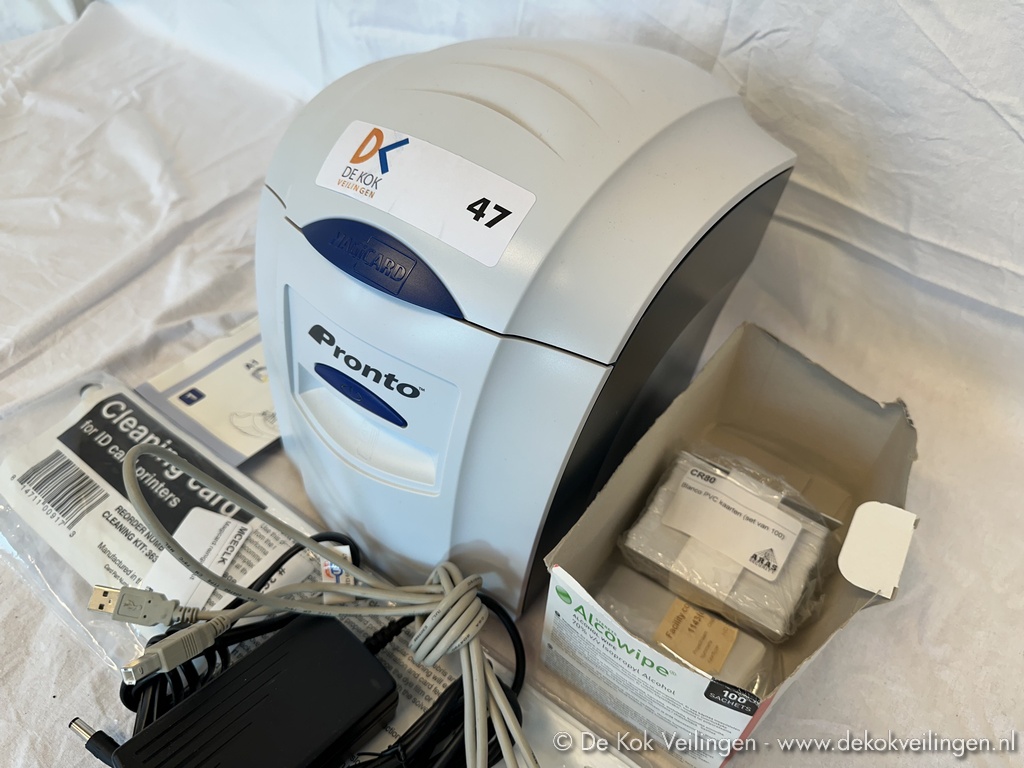 MagiCard Pronto Color Card Printer kaartprinter, inclusief USB-aansluitkabel, voedingsadapter en enige toebehoren en verbruiksmiddelen