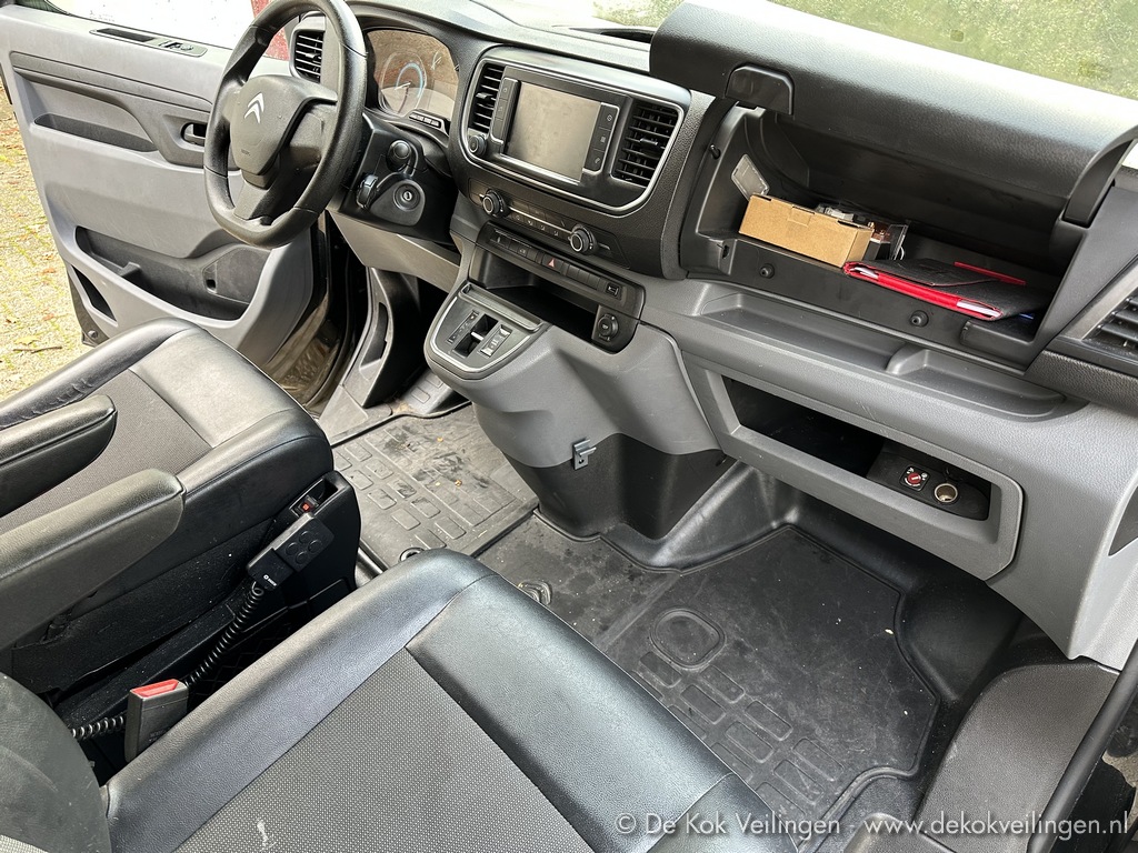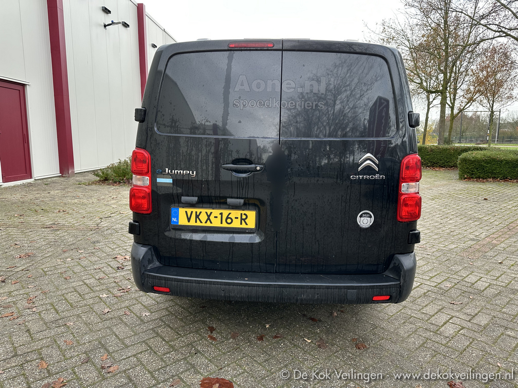 Citroen ë-Jumpy Control XL 75 kWh elektrische bedrijfsauto met gesloten opbouw; kenteken VKX-16-R; kleur Zwart; Datum eerste toelating 30-06-2021; APK vervaldatum 08-07-2027; afgelezen kilometerstand 252.453 km.; afgelezen reikwijdte bij volle EV-lading 226km.; gemeten SoH (State of Health) EV-batterij 76%; gemeten boordaccu Health 52%; laadvermogen gewicht 1029 kg.; met o.m. schuifdeur rechts, dubbele achterdeur, harde vloer met bevestigingshaken, MoteXion venster in tussenschot, elektrische ramen en spiegels, airco, cruise control, multimedia navigatieradio met Apple Carplay, Android Auto en DAB+, e-Control Citroën app met service-abonnement tot 23-01-2036, voorzien van een Talco mobilofoon, startonderbreker met magneetsleutel, reservesleutel, inclusief toebehoren als Type 2 laadkabel en reservewiel, (Rest-BPM € 0)