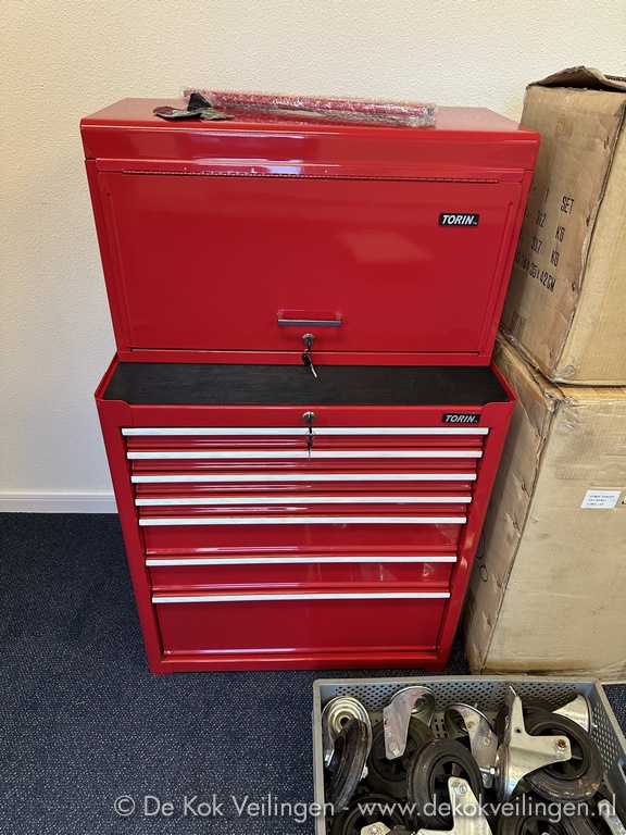 Torin TB2050BBS-B gereedschapskast met TB2050BBS-A bijpassende kist, 2-delige set, inclusief 2x sleutelset, diverse toebehoren, krat met separate zwenkwielen, in originele dozen, (Let op! Bevestigingsmateriaal als boutjes ontbreken, alsmede de origineel bijbehorende wielen)